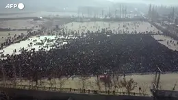 Folla di militanti all’abbazia di San Giacomo per i funerali del fondatore della Lega. Cori per la “Padania libera” e applausi per Zaia, ma all’arrivo del leader leghista scattano fischi e insulti: «Molla la camicia verde»