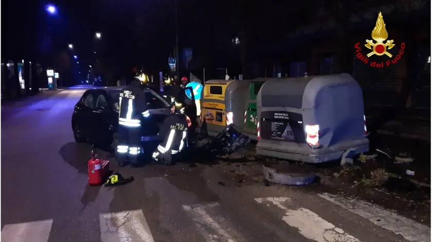 Belluno, esce di strada in via Feltre e si schianta sui cassonetti