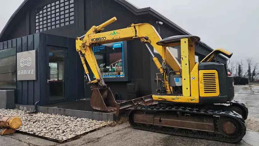 Una ruspa impedisce il passaggio sopra il pannello provvisorio