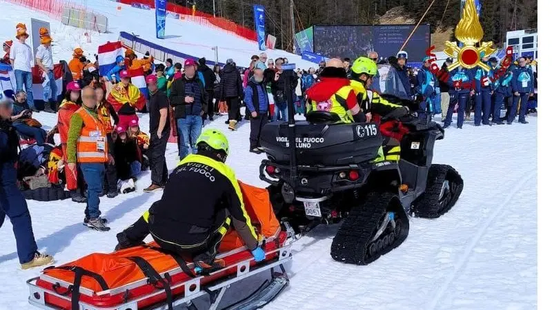 E’ accaduto durante le discese delle Paralimpiadi a Cortina. Pronto l’intervento dei vigili del fuoco e degli agenti della Polizia di Stato. La spettatrice è stata trasportata in ospedale