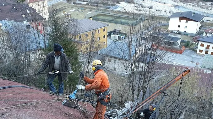 L’operazione di consolidamento del versante e riduzione del rischio geologico si è rivelata complessa. Il dissesto, infatti, si trovava in una zona di non facile accesso, non servita da viabilità. Proprio per questo, le maestranze hanno dovuto fare ricorso all’elicottero.