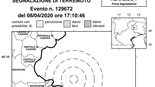 Scossa del 2,9 della scala Richter, a cinque chilometri dal centro del paese del Pordenonese, ma da Tambre al Cansiglio, dall’Alpago fino al Nevegal, è stato tutto un tremolio che ha messo in allarme le persone. Il terremoto in Valcellina, secondo le verifiche preliminari diffuse dalla Protezione civile del Friuli Venezia Giulia, si è verificato a una profondità di 12 chilometri.