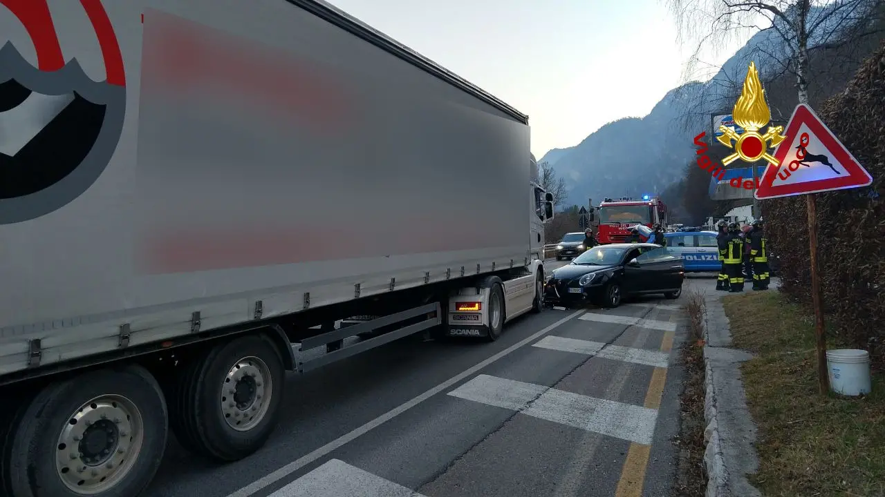 Longarone, scontro tra auto e Tir, un ferito