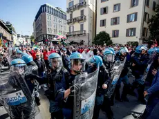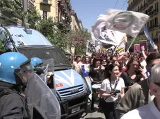 Fiaccolata a Torino, bruciati cartelli raffiguranti bandiere Nato e Europa
