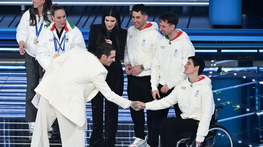 (ANSA) - SANREMO, 25 FEB - Orgoglio olimpico all'Ariston: reduci dai trionfi di Milano Cortina, in scena arrivano Francesca Lollobrigida, vincitrice di due ori, e Lisa Vittozzi, primo oro olimpico italiano nell'inseguimento femminile. Con loro sul palco i campioni paralimpici Giacomo Bertagnolli con la guida Andrea Ravelli a Giuliana Turra per il wheelchair curling. "Ecco una mamma d'oro che ci ha regalato emozioni", dice Carlo Conti presentando Lollobrigida. "L'emozione più bella - sottolinea l'atleta - è stata vedere mio figlio sugli spalti, è la forza che mi ha portato avanti. Grazie al pubblico italiano che ci ha dato tantissimo amore, è veramente un orgoglio per me". Vittozzi racconta che la sua avventura è "iniziata un po' per caso: all'inizio praticavo sport estivi, poi è nata questa passione, e mi sono subito innamorata di uno sport imprevedibile: mi piace il rischio, sono orgogliosa di aver portato il primo oro in Italia". Tra pochi giorni iniziano le Paralimpiadi: "La cosa che mi piacerebbe di più - dice Bertagnolli - è avere il sostegno di tutta l'Italia, di tutto il pubblico, è una cosa che ci manca, sarebbe quel pizzico in più che ci dà la forza di continuare". Un appello rilanciato da Turra e da Giovanni Malagò, presidente del comitato organizzatore dei Giochi, che interviene dalla platea: "Seguite le Paralimpiadi come avete seguito le Olimpiadi, con ammirazione: sono eroi moderni che nel limite hanno trovato la loro risposta, tramite lo sport, per vincere le loro battaglie. Grazie Rai". (ANSA).