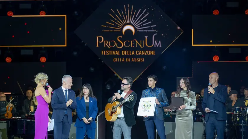 (ANSA) - PERUGIA, 09 NOV - È stato Tommaso Mauri (in arte Tommy), 25 anni, di Carate Brianza (Monza), con il brano "Gin a Capodanno" ad aggiudicarsi la settima edizione di "ProSceniUm - festival della canzone Città di Assisi" e del "memorial Cristian Parisi", concorso nazionale dedicato ai giovani talenti della musica cantautoriale, che si è tenuto al teatro Lyrick di Assisi. Mauri si è aggiudicato il premio NuovoImaie, che prevede un contributo di 10.000 euro per la promozione della sua attività artistica. Dietro di lui si sono classificati, Valentina Tioli, 33 anni di Modena, con "Verde" e Davide De Luca, 26 anni di Surbo (Lecce), con "Elettricità". Incetta di riconoscimenti per Davide Caprari, 35 anni, di Montemarciano (Ancona), che con "Perfetto sarto" si è aggiudicato i premi: per il miglior testo "Stefano D'Orazio", per la migliore musica e quello critica assegnato dalla Siae. Il premio per la canzone più radiofonica, assegnato dagli speaker di Radio Subasio, radio ufficiale del Festival, è andato a Pasquale Raia (in arte Raia), 29 anni di Scafati, con "Cosa siamo per davvero" mentre quello della giuria popolare Centro Commerciale Collestrada a Davide Cascini, 24 anni di Marsicovetere (Potenza), con "Domani sarà diverso". Grande successo per la serata, che ha registrato il sold out e che è stata presentata da Rudy Zerbi e Loredana Torresi, trasformata in un omaggio a Peppe Vessicchio, che avrebbe dovuto ricoprire il ruolo di presidente della giuria del Festival. Tanti i riferimenti fatti in ricordo del direttore d'orchestra, arrangiatore e compositore tra i più amati dal pubblico, a partire da quelli di Marino Bartoletti, anche lui in giuria, che lo ha citato durante il suo monologo su Lucio Dalla e il Festival di Sanremo. Tanti gli ospiti della serata tra cui Federico Zampaglione, voce e mente dei Tiromancino, che ha ricevuto il prestigioso premio "Sorella Musica". Sul palco anche Silvia Mezzanotte, solista ed ex voce dei Matia Bazar, con un medley di canzoni. Come sempre i nove i finalisti in gara, selezionati tra oltre 200 candidati provenienti da tutta Italia, si sono esibiti dal vivo, accompagnati dall'orchestra diretta dal maestro Paolo Ciacci. (ANSA).