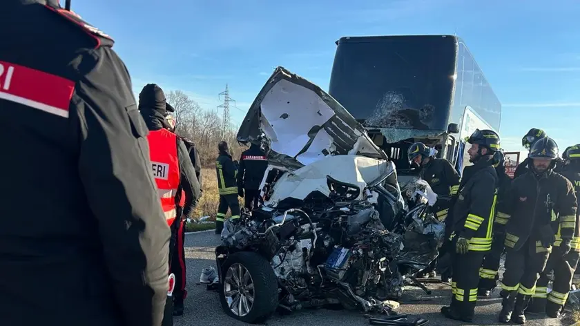 Auto contro corriera con studenti, vettura stava sorpassando