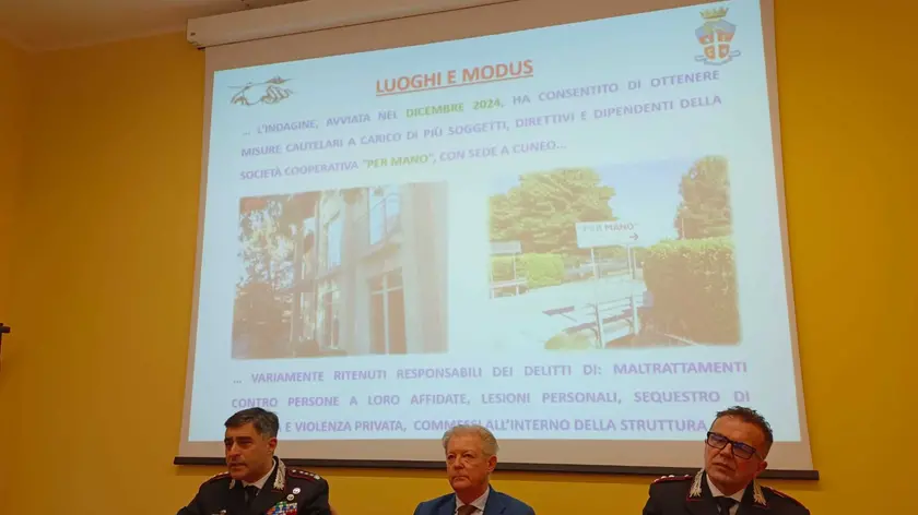 (ANSA) - CUNEO, 06 NOV - Sono ipotizzati i reati di maltrattamenti, violenza privata e sequestro di persona nell'inchiesta sulla cooperativa sociale Per Mano di Cuneo, che ha portato nei giorni scorsi all'arresto della direttrice della struttura Emanuela Bernardis e della coordinatrice Marilena Cescon, cui si aggiungono 4 arresti domiciliari e 11 divieti di avvicinamento. Gli indagati sono in totale 21, 4 restano a piede libero. "Abbiamo potuto vedere registrazioni aberranti" afferma il colonnello Marco Piras, comandante provinciale dei carabinieri. "Gli ospiti erano in condizioni psicofisiche di assoluto disagio" aggiunge il procuratore capo Onelio Dodero. (ANSA).