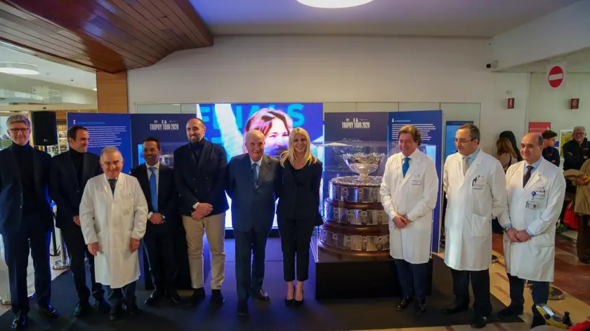 (ANSA) - ROMA, 07 GEN - Per tre giorni, da mercoledì 7 a venerdì 9 gennaio 2026, il Policlinico Universitario Gemelli IRCCS è tappa ufficiale del Trophy Tour 2025/2026, ospitando in esclusiva per il mondo ospedaliero, la Davis Cup e la Billie Jean King Cup, i trofei più prestigiosi del tennis mondiale a squadre conquistati dalle Nazionali italiane maschile e femminile nel 2025. L'iniziativa si inserisce nel progetto sociale "Non lasciamo nessuno solo", promosso dall'Istituto Giuseppe Toniolo e dall'Università Cattolica del Sacro Cuore, in collaborazione con Tennis & Friends, Federazione Italiana Tennis e Padel e International Tennis Federation e Fondazione Policlinico Gemelli. Il progetto valorizza lo sport come strumento di salute, prevenzione e inclusione, portando un messaggio concreto di vicinanza e solidarietà all'interno dei luoghi di cura. Da questo appuntamento riparte anche il Tour di Tennis & Friends-Salute e Sport 2026, che celebra il suo quindicesimo anno tornando proprio al Policlinico Gemelli, dove è nato con l'iniziativa Tennis & Friends in Corsia che porta lo sport direttamente all'interno dei reparti ospedalieri, in particolare quelli pediatrici. Atleti, istruttori federali e testimonial del mondo del tennis incontrano i bambini ricoverati e le loro famiglie; si tratta di un'occasione per condividere momenti di gioco, dialogo e leggerezza, trasformando per qualche ora le corsie in spazi di relazione e vicinanza, dove il tennis diventa strumento di sostegno emotivo, incoraggiamento e speranza. Nel pomeriggio, l'apertura dell'evento è stata condotta da Eleonora Daniele. Sono intervenuti il vicepresidente della Fondazione Gemelli IRCCS Giuseppe Fioroni, il direttore generale del Policlinico Gemelli Daniele Piacentini, e il preside della Facoltà di Medicina e chirurgia dell'Università Cattolica del Sacro Cuore Alessandro Sgambato. Per la FITP hanno preso la parola Luigi Carraro, consigliere e presidente Federazione Internazionale Padel, e Diego Nargiso, ex Davis man, campione juniores a Wimbledon e già n° 26 del mondo. Hanno partecipato inoltre Marco Martinasso, direttore generale della FITP, e Giorgio Meneschincheri, dirigente medico del Policlinico Gemelli e presidente di Tennis & Friends. Venerdì 9 dalle ore 13.00 nella Hall del Policlinico, interverranno il capitano della Nazionale maschile di Coppa Davis, Filippo Volandri, la capitana di Billie Jean King Cup, Tathiana Garbin, e tanti altri personaggi che si recheranno presso i reparti pediatrici per incontrare i bambini ricoverati e le loro famiglie. Per tutte le tre giornate nell'area di ingresso del Gemelli, allestita a cura della Federazione Italiana Tennis e Padel, sarà possibile ammirare i due trofei mondiali. "Accogliere al Gemelli i trofei simbolo del tennis mondiale significa ribadire che la cura non è fatta solo di terapie mediche, ma anche di attenzione al proprio stile di vita, in cui l'attività sportiva ricopre un ruolo centrale", afferma Daniele Piacentini, dg della Fondazione Gemelli. (ANSA).