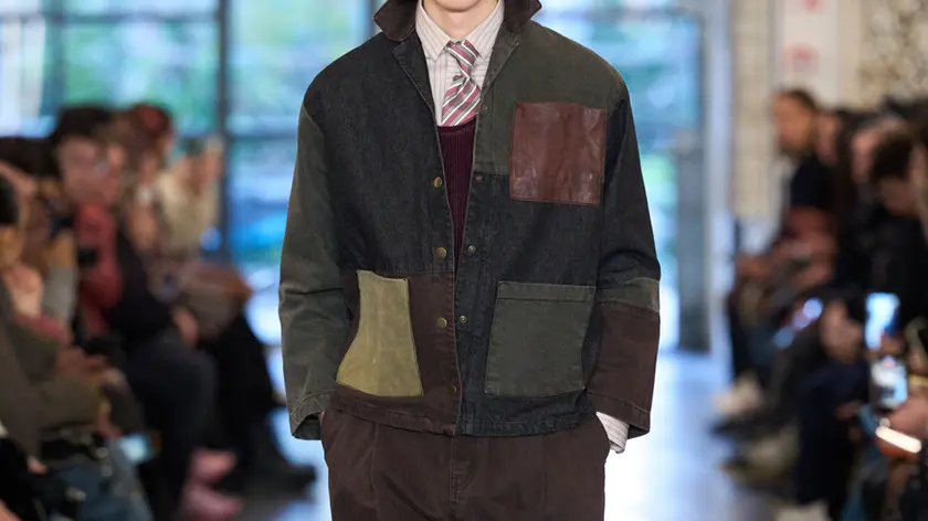 (ANSA) - MILANO, 19 GEN - Si ispira alla logica delle tradizionali coperte patchwork, considerando la struttura, il rinforzo e la stratificazione come modi pratici per creare calore e resistenza, la collezione 'Assembled' di David Catalán, che ha sfilato oggi a Milano. Lo stilista portoghese ha tradotto questa ispirazione in un guardaroba disinvolto progettato per essere combinato, stratificato e vissuto. Tra le proposte, il total look monocolore, declinato in pelle o velluto con camicia, cravatta e pantalone tutti nella stessa tonalità, ma anche il montgomery in versione giubbino, il pantalone di denim spalmato portato con la camicia patchwork, leitmotiv della collezione uomo per il prossimo inverno. (ANSA).