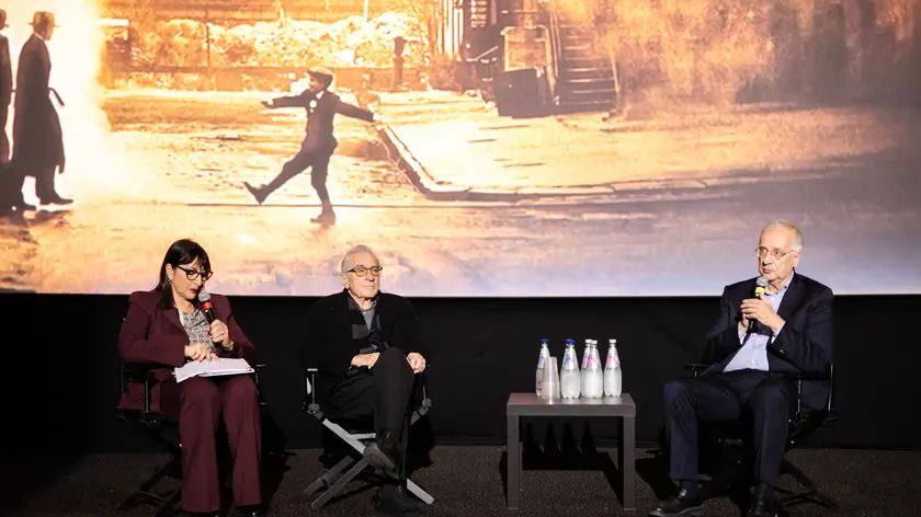 (di Francesco Gallo) (ANSA) - ROMA, 07 NOV - Il rapporto con Sergio Leone, la musica di Ennio Morricone, la dimensione epica cinematografica e, infine, l'odiata America di Trump. Questi solo alcuni temi trattati da Robert De Niro intervistato da Walter Veltroni al cinema Moderno di Roma in occasione della proiezione di 'C'era una volta in America' di Sergio Leone in 4k per gli studenti di cinema, ultimo atto de Il fuori sala di Alice nella città. Cosa è stato questo film? "Per Sergio Leone era soprattutto un atto d'amore e ho avuto la netta sensazione che non voleva finisse mai per non provare quella triste situazione agro-dolce che si avverte quando abbandoni un set e lasci tante persone che forse non vedrai più". Chi era Leone? "Un uomo soprattutto pieno di senso di umorismo, una persona simpatica che non ostentava nessuna pretesa, era insomma fantastico". L'America è ancora capace di fare film lunghi ed epici? "Penso di sì. È il caso di Una battaglia dopo l'altra di Paul Thomas Anderson, che non ho ancora visto, ma di cui mi hanno parlato tutti bene. Comunque dipende alcuni vengono realizzati per esempio per lo streaming, per essere suddivisi in tanti episodi. Certo questo è un modo diverso di raccontare la storia, ma credo che il film epico sia ancora possibile penso ad esempio a registi come Martin Scorsese". Quanto pesa la musica di Morricone in un film? "Pesa molto ve lo assicuro. Ho avuto la fortuna di aver lavorato in quattro film con le sue musiche e quindi conosco la differenza". Il suo rapporto col cinema italiano? "Da ragazzo a New York ho visto tanto cinema che veniva dall'Italia penso a Federico Fellini, ad Antonioni, a Pasolini tutti autori che ho sempre guardato con ammirazione e che ho amato tantissimo". L'America di oggi le piace? "Che dio ci aiuti! Non si può continuare ad usare la parola speranza, ma bisogna reagire così come si è cominciato a fare, per esempio, a New York con le elezioni del nuovo sindaco, ma anche in Virginia e in California. Non si può permettere che questa amministrazione bullizzi tutto perché credo sia fondamentale rispondere. Vogliamo insomma che ci venga restituito il nostro Paese e non venga trasformato come sta succedendo in una dittatura fascista". (ANSA).