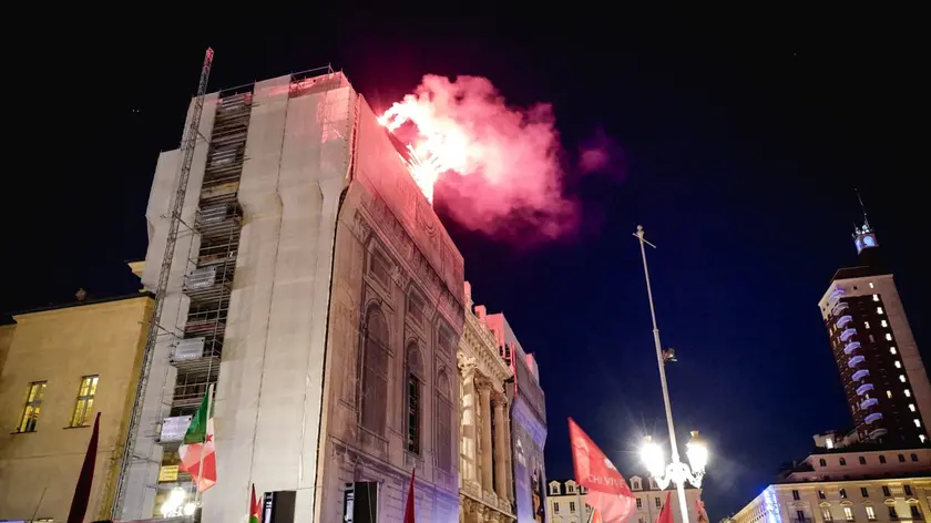 (ANSA) - TORINO, 24 APR - In Piazza Castello a Torino, dove è giunta la fiaccolata istituzionale del 25 aprile, dopo gli interventi previsti dal programma sono saliti sul palco i manifestanti appartenenti agli spezzoni 'Partigiani della Pace' e 'Torino è Partigiana', che vede la partecipazione di studenti universitari e medi, del coordinamento Torino per Gaza, degli autonomi di Askatasuna e di attivisti No Tav. Non si sono registrate tensioni, ma sono stati dati alle fiamme due cartelli raffiguranti la rosa dei venti bianca su campo blu della Nato e la bandiera dell'Europa. Intanto un gruppo si è arrampicato sulla facciata di Palazzo Madama usando le impalcature presenti per dei lavori in corso. I manifestanti saliti sull'edificio hanno esposto una enorme bandiera palestinese, accesso numerose torce rosse da segnalazione, e sventolato la bandiera di Autonomia Contropotere, area politica di riferimento del centro sociale Askatasuna sgomberato il 18 dicembre scorso. Alla fiaccolata, che era partita da piazza Arbarello, hanno partecipato alcune migliaia di persone. Ora sono in corso gli interventi dei collettivi appartenenti ai diversi spezzoni: all'arrivo degli spezzoni sociali, la piazza ha intonato 'Bella Ciao'. (ANSA).