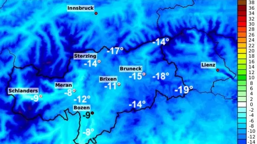 Freddo in Alto Adige, -19 gradi a Sesto e -8 a Bolzano