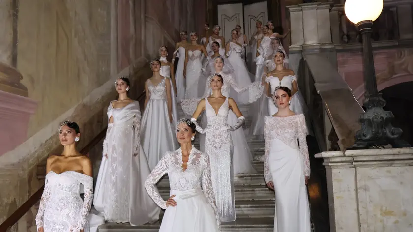 (di Patrizia Vacalebri) (ANSA) - ROMA, 13 OTT - La settecentesca Reggia di Portici ha accolto per la prima volta, una sfilata di alta moda sposa: Stupor Mundi, nuova collezione bridal firmata dallo stilista Gianni Molaro. Davanti a un parterre di seicento ospiti, tra cui anche Alessandro Cecchi Paone, le antiche sale affrescate della Reggia partenopea appartenuta ai Borbone, hanno visto sfilare gli abiti da sposa scintillanti di ricami barocchi, dello stilista di San Giuseppe Vesuviano (Napoli), sempre molto sensuali nei giochi di trasparenze, nei corsetti steccati, nelle scollature profonde sulla schiena. Ma ad aprire il fashion show, con le note di sottofondo dell'Ave Maria della Callas remixata, è stato un corteo di giovani ragazzi a torso nudo e scalzi, con pantaloni di tulle bianchi e un lungo velo sul capo trattenuto da coroncine. I modelli invocavano la Vergine e uno di loro faceva il gesto d'incensare gli ospiti. "Rappresentano l'amore universale - spiega Molaro a margine del fashion show - sono figure di esseri puri, come le mie spose, che io immagino forti e belle come angeli". Tra le modelle, c'erano anche alcune delle ex ragazze che sfilavano per lo stilista campano a Roma negli anni Novanta al suo debutto. "Oggi sono splendide quarantenni - ricorda - e per me rappresentano un messaggio d'inclusione. Una donna che torna a sfilare a quasi cinquant'anni è meravigliosa. Poi l'età delle spose è cambiata - sottolinea - Oggi la donna arriva all'altare sempre più spesso da adulta. Ma i sogni sono senza tempo e quindi anche per questo tipo di cliente ho realizzato creazioni romantiche". Così sfilano abiti a sirena, oppure capi principeschi, con piccoli corpetti e gonne large, chiuse da romantici fiocchi sul dietro; bustier con ricami di fiori in 3D, abiti double, trasformabili con una semplice gesto, un must dello stilista: si toglie la sopra-gonna in raso, ampia e annodata in vita, ed ecco apparire l'abito a sirena sottostante, più adatto al party del dopo cerimonia e a scatenarsi nelle danze. La nuova collezione sposa 2026 si compone di cento abiti. Gianni Molaro ha aperto il suo primo atelier nel 1990. Ora ne ha due, uno a Napoli e l'altro a Roma, in via del Babuino, inaugurato nel 2012 con una trovata delle sue: ha coperto Trinità dei Monti con tremila metri di tulle bianco. Si ricorda infatti che Molaro è uno stilista da record. Il primo raggiunto nel 1993 con un velo di 326,70 metri. Ha quindi ripetuto l'esperienza con un abito da sposa di dodici metri di diametro e infine ha raggiunto un altro primato con l'abito tempestato da settemila diamanti. Il debutto sulle passerelle dell'alta moda di Roma è avvenuto nel 1999. Molaro si definisce "un artista trasversale" perché è anche pittore e scultore. Dal 2014 ha partecipato al programma televisivo di Rai2 "Detto Fatto" come stilista e tutor dell'Accademia di Moda. Nel 2021 ha realizzato la sua prima collezione di pret a porter. (ANSA).