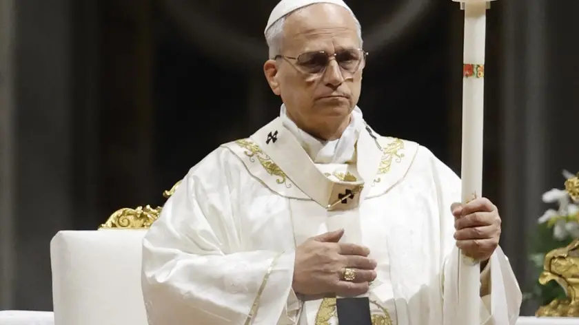 (ANSA) - CITTÀ DEL VATICANO, 05 APR - Papa Leone XIV è arrivato a Piazza San Pietro dove celebra la messa per la festa di Pasqua. (ANSA).