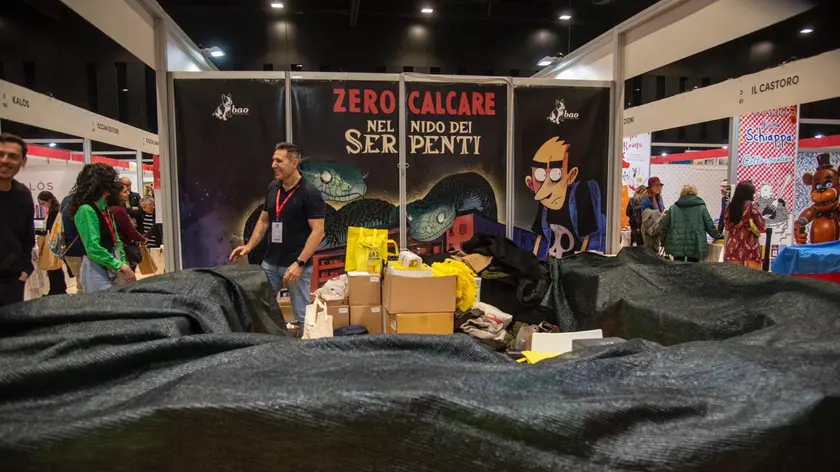 (ANSA) - ROMA, 06 DIC - Tanti gli stand coperti, tra le 15 e le 15.30, per la protesta degli editori a Più Libri Più Liberi. Poi c'è stata una riunione in cui alcuni editori hanno parlato, chiedendo "risposte dall'Aie" e dicendo: "Non accettiamo che la cultura fascista sia al pari delle altre". A un certo punto è arrivato Francesco Giubilei che ha chiesto l'opinione degli editori sui libri su Stalin. La risposta è stata: "Di Stalin nessuno fa apologia, del fascismo sì". Poi il pubblico presente ha cominciato a urlare "Fuori i fascisti dalla fiera", "Siamo tutti antifascisti" e cantare Bella Ciao. Questi alcuni degli editori che hanno partecipato alla protesta coprendo i loro libri: Altreconomia, Futura editrice, Bakemono Lab, Hoeplini, Nova Delphi Libri, Rfb Edizioni, Come si scrive una grande storia, Astarte edizioni, Caissa Italia, Robin - Biblioteca del Vascello, Fandango Libri, Settenove, Ianieri Edizioni, Beccogiallo Edizioni, Meltemi Editore, Coconino Press, Tic Edizioni, Editori Riuniti, Editori Laterza, Zolfo Editore, Laurana Editore, Textus Edizioni, Homo Scrivens, Arcadia Edizioni, Bibliotheka, Il Millimetro, Viella Edizioni, Fondazione Benetton Studi Ricerche, Voland, Lonely Planet, Emons, Red Star Press, Aboca Edizioni, Cina in Italia, Erickson, Lotta Comunista, Orecchio Acerbo. Nel frattempo, davanti a Passaggio al Bosco si è radunato un gruppo di acquirenti. Il blocco di manifestanti si è dunque mosso in un piccolo corteo, arrivando fino allo stand della casa editrice al suono di "Fuori i fascisti dalla fiera". Uno degli acquirenti ha detto a quel punto: "Guardate i libri, magari scoprite che con qualcuno siete d'accordo". (ANSA).