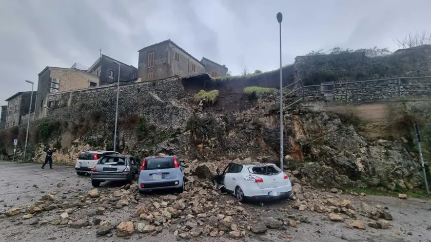 Maltempo nel Frusinate, muro frana sulle auto a Castro dei Volsci