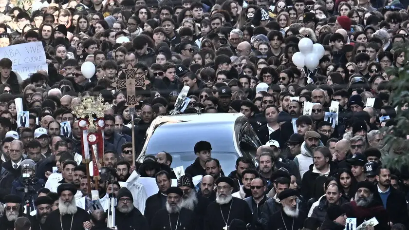 (ANSA) - LA SPEZIA, 22 GEN - Palloncini bianchi e azzurri sui quali sono state scritte parole d'affetto e lunghi applausi hanno accolto all'esterno della cattedrale della Spezia il feretro bianco che contiene il corpo di Abanoud Youssef, il diciottenne di origini egiziane nato in Italia e morto dopo essere stato accoltellato a scuola, all'interno dell'istituto Chiodo della Spezia. I suoi compagni di scuola hanno portato in piazza lo striscione 'Aba vive' che per qualche giorno è rimasto appeso fuori dall'istituto. Molti i fiori bianchi in mano a ragazzi giovanissimi provenienti da tutte le scuole della Spezia. La funzione religiosa, celebrata in rito copto, ha visto la partecipazione del delegato del vescovo metropolita mons. Barnaba, del vescovo della Spezia mons. Palletti e di tutte le autorità civili e militari della Spezia. Il feretro sarà trasferito al cimitero dei Boschetti. (ANSA).