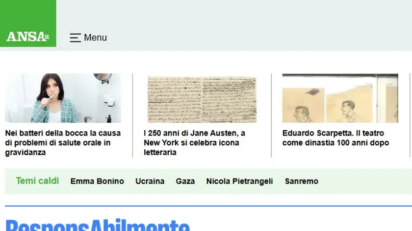 (ANSA) - TORINO, 01 DIC - Si chiama ResponsAbilmente il nuovo canale ANSA, il primo in Italia dedicato esclusivamente all'inclusione, alla disabilità e alla responsabilità sociale. Punta a rendere accessibili le principali notizie del giorno. Realizzato dalla redazione di Roma con il contributo di tutte le redazioni d'Italia e del mondo dell'agenzia, il portale è stato presentato in occasione della terza edizione del Premio Giornalistico 'Paolo Osiride Ferrero' 2025 presso il Museo Regionale di Scienze Naturali di Torino. 'Dopo aver conosciuto Cpd (la Consulta per le persone in difficoltà), ho pensato che non potevamo non dare spazio a questi temi. Il portale è il risultato dell'impegno che abbiamo messo in questi anni', ha spiegato il direttore Luigi Contu. 'Grazie a Cpd per il lavoro che fa e grazie all'ANSA per aver aperto il portale ResponsAbilmente: è importante un'informazione corretta sulla disabilità, parlare del linguaggio. Bisogna dare una risposta ai bisogni delle persone', ha detto in un video la ministra per la Disabilità Alessandra Locatelli. (ANSA).