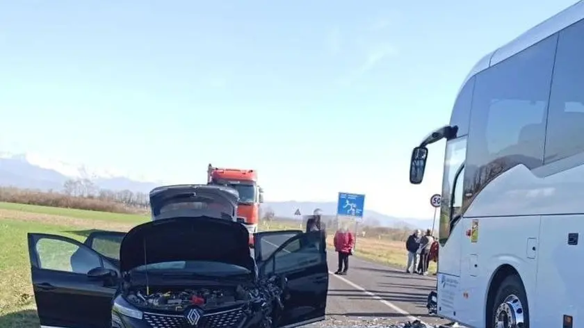 Scontro tra bus di fedeli e auto in Friuli, un ferito