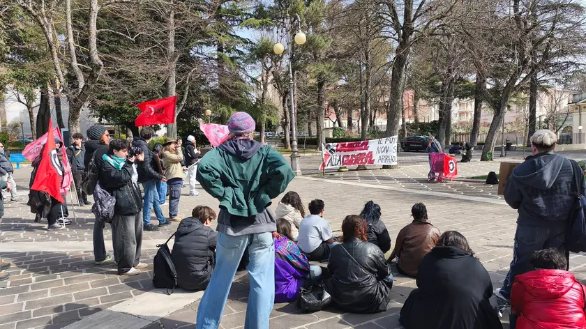 (ANSA) - L'AQUILA, 05 MAR - Al centro della Villa comunale dell'Aquila un cartello di cartone, scritto con un pennarello nero spesso. In alto una frase: "War, children, it's just one shot away - La guerra è solo a uno sparo". Sotto, più piccolo, qualcuno ha aggiunto la fonte: The Rolling Stones. Il verso arriva da "Gimme Shelter", la canzone del 1969. È uno degli slogan comparsi questa mattina durante il corteo degli studenti partito dalla Fontana Luminosa nell'ambito dello sciopero giovanile contro la militarizzazione e l'aumento delle spese militari. La manifestazione nel capoluogo intercetta un'iniziativa a livello nazionale dalla Rete della Conoscenza, che riunisce Unione degli Studenti e Link-Coordinamento Universitario, e ha portato in piazza anche all'Aquila studenti delle scuole e dell'università, in un momento particolarmente delicato a causa delle tensioni in Medio Oriente. "Siamo in corteo come giovani contro politiche di guerra e normalizzazioni di uno scenario bellico nella vita quotidiana - ha dichiarato Francesco Filippone, responsabile organizzazione dell'UdS Abruzzo -. Nel nostro Paese, come in molti altri Stati europei, c'è la volontà di reintrodurre la leva militare, nonostante secondo i sondaggi i giovani siano ampiamente contrari all'arruolarsi". Nel mirino degli organizzatori anche l'aumento della spesa militare. Secondo i promotori della mobilitazione, nel 2026 in Italia si supereranno i 31 miliardi di euro, con circa 13 miliardi destinati all'acquisto di armamenti, mentre continuano i tagli a istruzione e sanità. Il corteo ha visto interventi e momenti di confronto tra gli studenti. (ANSA).