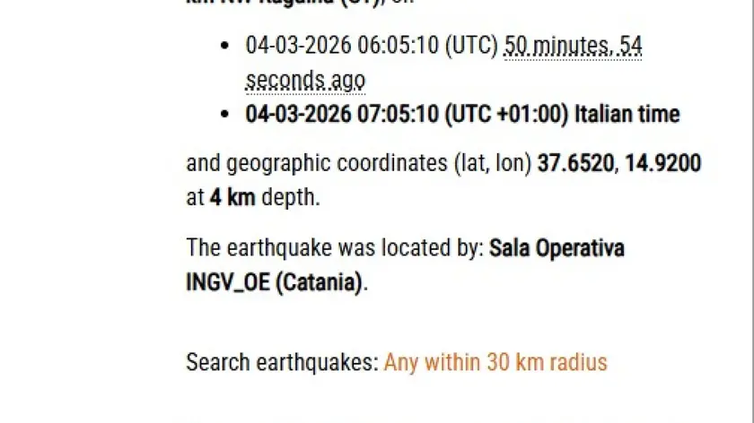 (ANSA) - CATANIA, 04 MAR - Nessuna segnalazione di danni a Catania è giunta per il terremoto di magnitudo 4.5 registrato alle 07:05 sull'Etna, ma le scuole resteranno chiuse per precauzione. Lo ha annunciato il sindaco Enrico Trantino spiegando che le lezioni sono sospese oggi a scopo precauzionale per consentire sopralluoghi alle strutture che ospitano le scuole. Analoga iniziativa è stata adottata in diversi comuni della provincia. (ANSA).