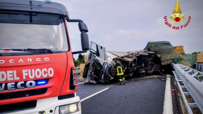Tir carico di paglia si ribalta in A14, coda di 9 km verso Bari