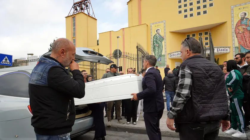 Una bara bianca e corone di fiori per l'addio a Fabio vittima innocente