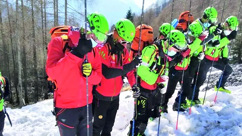Una immagine del Soccorso alpino alle prese con una esercitazione in caso di valanga e ricerca persone