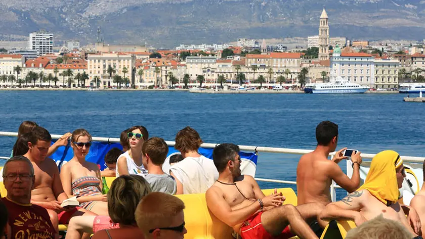 Un traghetto pieno di turisti di fronte a Spalato