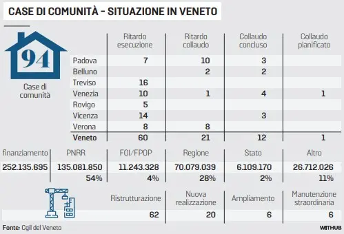 Tre in tutto quelle completamente funzionanti ad oggi, capaci di garantire tutti i servizi previsti, a due mesi dalla chiusura del grande rubinetto di fondi europei chiamato Piano nazionale di ripresa e resilienza. Nel Padovano, ad esempio, risultano conclusi i lavori soltanto per le strutture di Vigonza, Piove di Sacco e Carmignano di Brenta. «Come sindacato, faremo dei sopralluoghi per capire cosa c’è e cosa funziona – promette Basso – le criticità sono troppe».