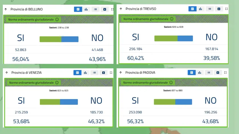 Sfugge alle dinamiche nazionali il Veneto, dove i cittadini hanno votato in maggioranza per riformare la giustizia. Così si è espresso il 58,4% degli