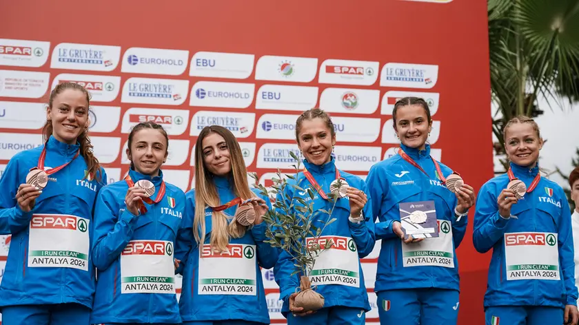 Le azzurre sul podio dell'Europeo di Cross: Lucia Arnoldo è la quarta da sinistra