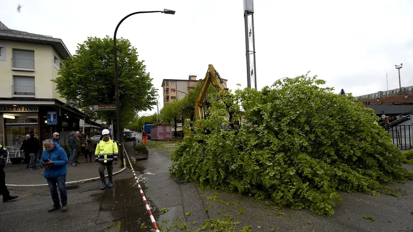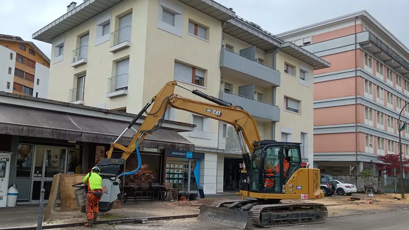 Macchinari al lavoro in via Feltre per rimuovere le ceppaie