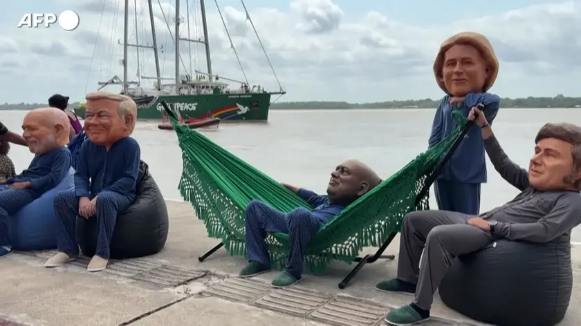 Cop30, attivisti con maschere giganti dei leader mondiali protestano in Brasile